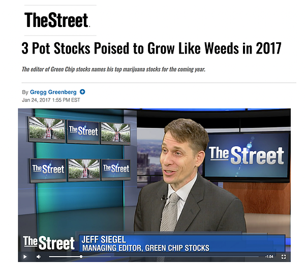 Siegel explains why pot stock investors will see green and names his top marijuana stocks, including Innovative Industrial Properties (IIPR – Get Report) , Canopy Growth (TWMJF) and Aphria (APHQF).